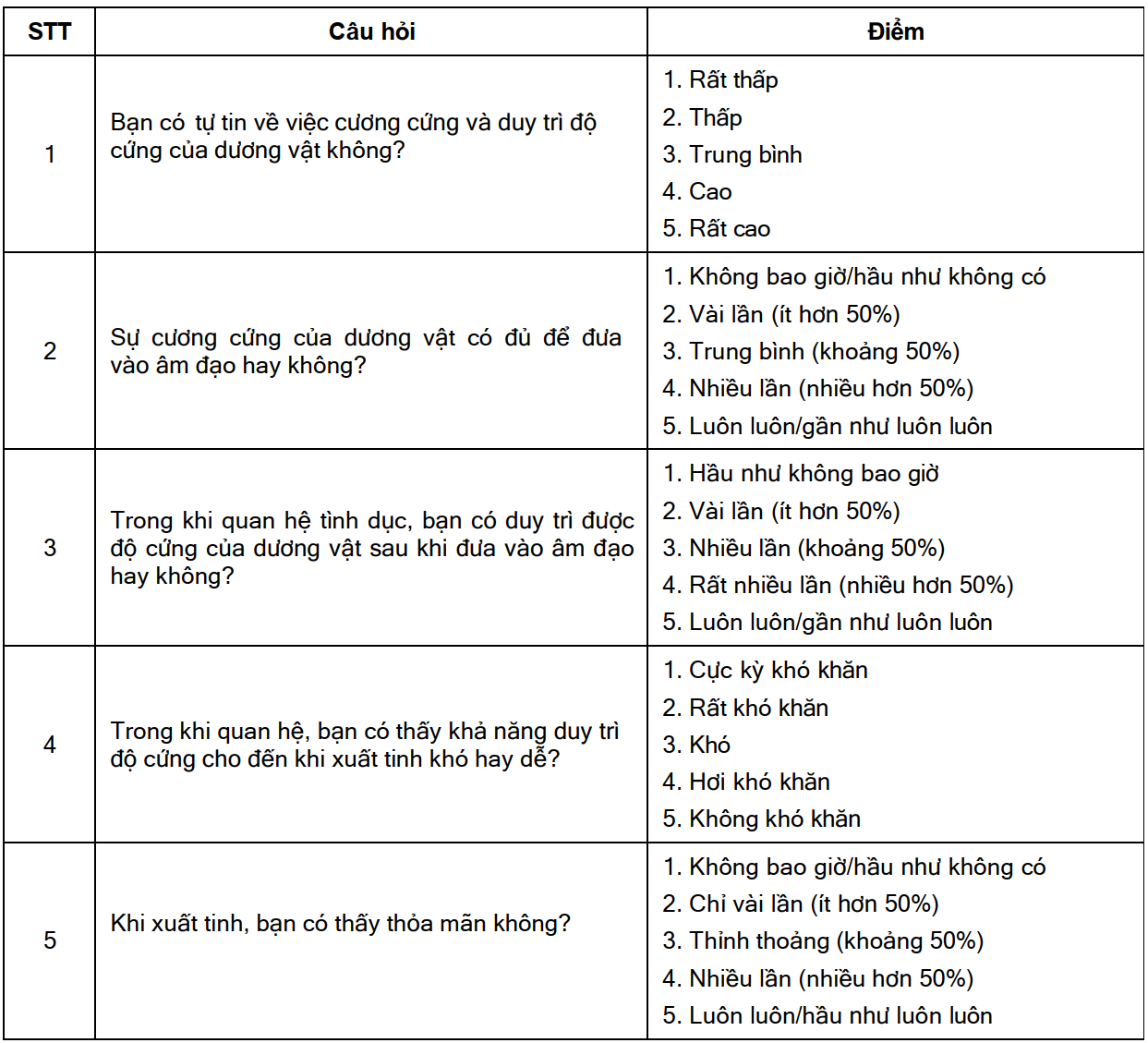 Bộ câu hỏi chỉ số chức năng cương quốc tế IIEF - 5